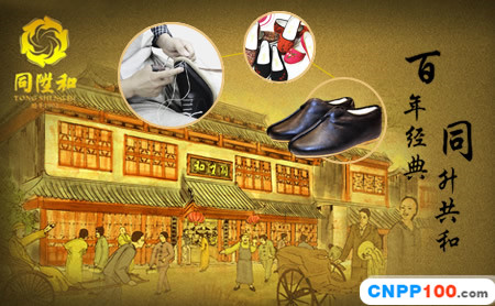 北京同升和鞋店始創(chuàng)于1902年,現(xiàn)座落于王府井大街,是著名的鞋類商品生產(chǎn)經(jīng)營企業(yè)。同升和最初以生產(chǎn)千層底布鞋和帽子為主,第一任掌柜莫蔭軒是河北寶坻人。開業(yè)時,清朝大臣鐵良贈了一副對聯(lián):“同心偕力功成和,升宮冠戴財源多”,巧妙的把“同升和”三字融于對聯(lián)中,寓意為“同心協(xié)力,和氣生財”。