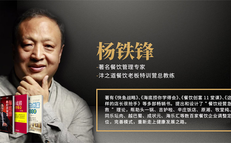 灃之道在十余年的發(fā)展歷程中,不僅積攢了資源,熔煉了團(tuán)隊(duì),建設(shè)了平臺(tái),更是收獲了信任,樹(shù)立了品牌。在著名餐飲管理專(zhuān)家;《快魚(yú)戰(zhàn)略》、《海底撈你學(xué)得會(huì)》、《餐飲創(chuàng)富11堂課》等多本暢銷(xiāo)書(shū)作者楊鐵鋒老師的帶領(lǐng)下,灃之道這艘餐飲業(yè)管理培訓(xùn)、咨詢(xún)服務(wù)領(lǐng)域的旗艦,以所向披靡之勢(shì),始終航行在前方!