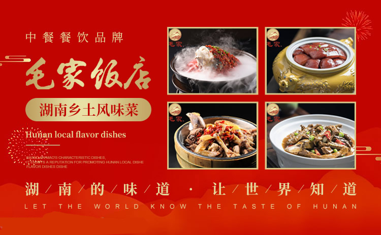 始于1987年,湖南省著名商標(biāo),知名中餐餐飲品牌,其以毛家特色菜肴為基礎(chǔ),推廣湖南鄉(xiāng)土風(fēng)味菜而享有聲譽(yù)